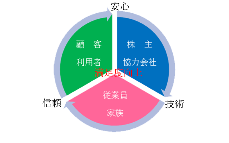 顧客満足、株主満足、従業員満足の三つの満足度向上を安心、信頼、技術で支えています。